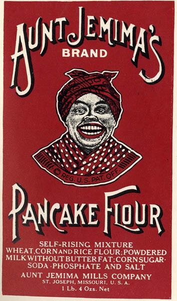 In the 1880s, two white flour mill owners began selling their “Aunt Jemima” pancake mix. They borrowed the name Aunt Jemima from an old minstrel-show song that began with the black soldier stereotype: “the monkey dressed in soldier clothes…” At the time, few Americans had any trouble with a “mammy”-themed product named after a racist song, and the marketing for Aunt Jemima products didn’t change much for decades. Four different actresses were hired to portray Aunt Jemima at expos over the years, and her image appeared in many colour advertisements that used faux African-American language.