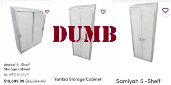 That wasn’t the issue with the WFX cabinets, however. Wayfair issued a statement to clarify that these were industrial-grade products that actually do cost in excess of $12,000 (and these were reduced prices).The company temporarily removed the items from its catalog in order to fine-tune their product descriptions. Most WFX Utility products available on Wayfair are moderately priced and designed for home use, and it’s difficult to distinguish those from the higher-end industrial products just by looking at a photo.